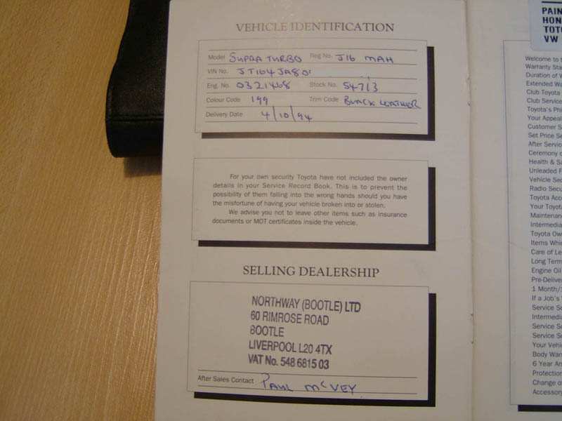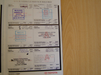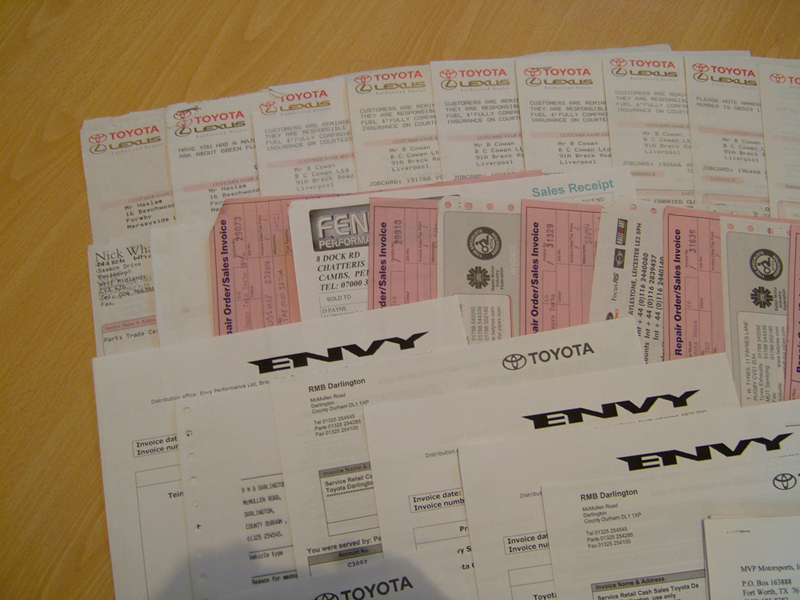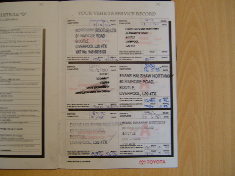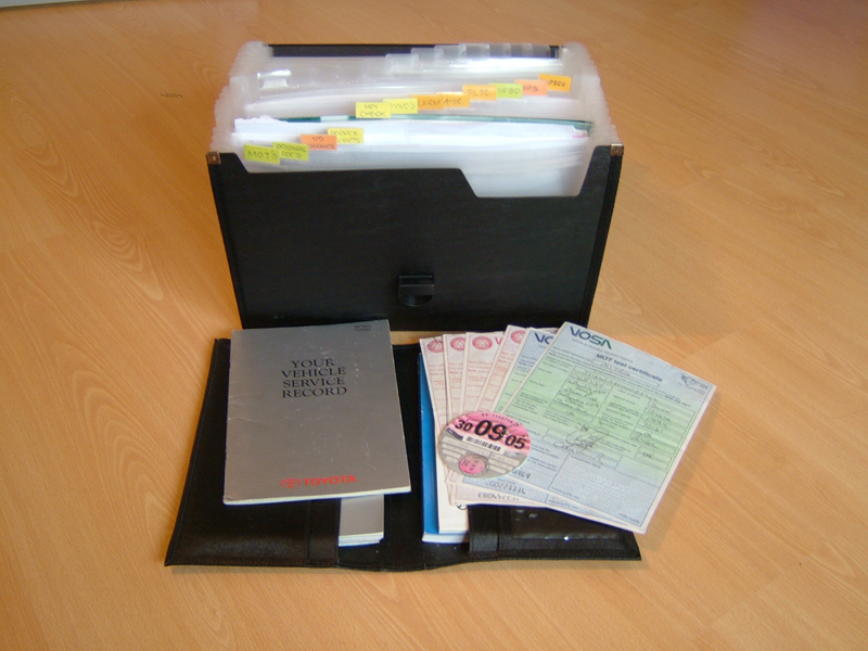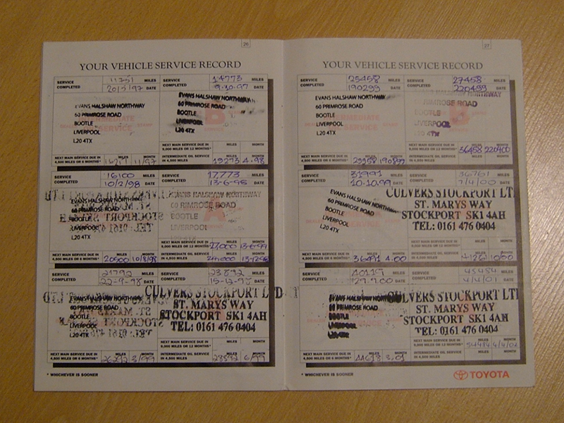 Diese Bilder zeigen einen Auszug aus der Dokumentation des Fahrzeuges welche einfach nur als „BEINDRUCKEND“ bezeichnet werden kann. Beinhaltet sind fast jeder Service, jede Reparatur, jede TÜV (MOT in England) Untersuchung und fast jede Modifikation in den 13 Jahren. Solch eine Dokumentation sucht seines Gleichen.